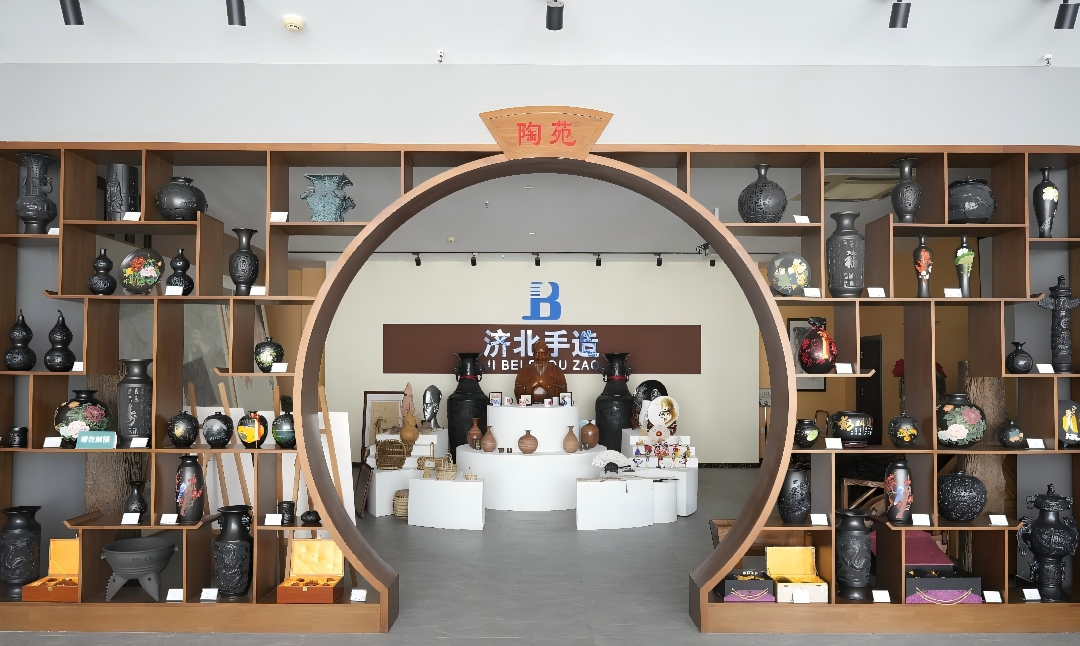 作為濟陽區(qū)非遺文化的重要展示窗口,展廳始終以傳統(tǒng)技藝類產品為核心支柱。升級后,黑陶的古樸厚重、老粗布的經緯溫情、木作的匠心巧思、剪紙的靈動鮮活、柳編的自然質樸,以及黃河五彩陶、刻瓷、烙畫、彩塑等十余項代表性非遺手造產品依舊悉數亮相,每一件作品都承載著當地匠人數十年的技藝沉淀,全方位呈現了非遺文化的深厚底蘊與獨特魅力,讓觀眾在參觀中直觀感受傳統(tǒng)手造的文化溫度。