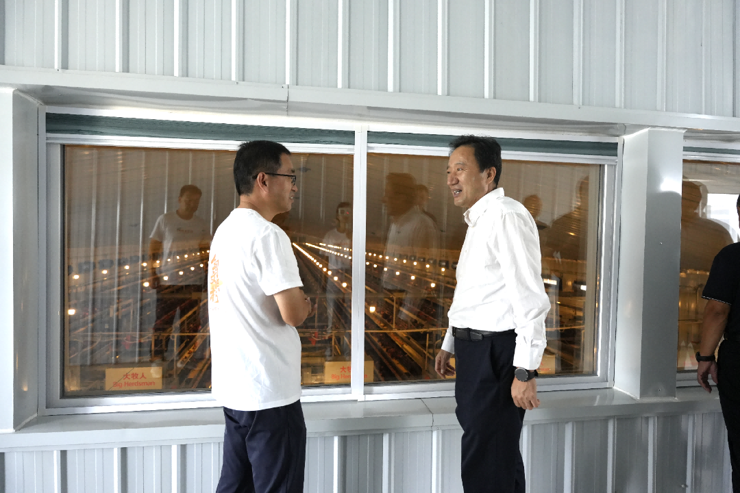 調(diào)研組隨后實(shí)地走訪蛋雞養(yǎng)殖舍,朱總介紹道,目前蛋雞存欄量穩(wěn)定在60萬羽,年產(chǎn)蛋量過萬噸,智能化管理大大提高蛋雞成活率,遠(yuǎn)超傳統(tǒng)養(yǎng)殖水平。隨后,白書記詢問企業(yè)二期工程進(jìn)展,并對此表示期待,鼓勵企業(yè)加快建設(shè)進(jìn)度,早日形成更大產(chǎn)能、發(fā)揮更強(qiáng)帶動作用。他強(qiáng)調(diào),畜牧業(yè)是保障民生供給、推動鄉(xiāng)村產(chǎn)業(yè)振興的重要支柱,易豐農(nóng)業(yè)要持續(xù)發(fā)揮示范引領(lǐng)作用,進(jìn)一步強(qiáng)化科技支撐,優(yōu)化生產(chǎn)管理,嚴(yán)格把控產(chǎn)品質(zhì)量安全,不斷提升產(chǎn)業(yè)競爭力;相關(guān)部門要主動對接企業(yè)需求,做好政策扶持與服務(wù)保障,共同推動全區(qū)畜牧業(yè)高質(zhì)量發(fā)展。