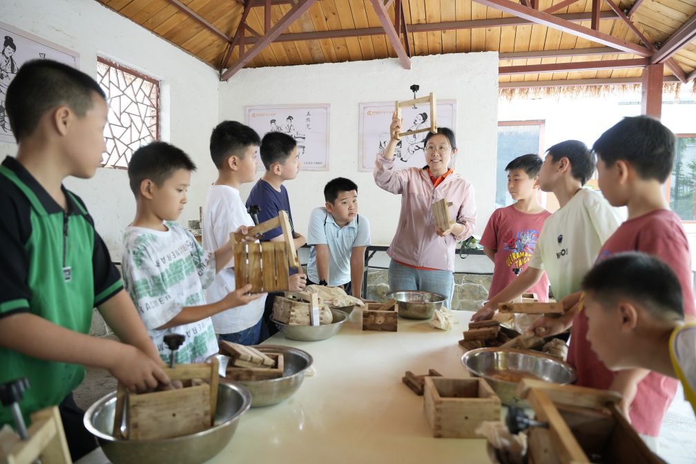 領(lǐng)略完黑陶的魅力,一行人又來(lái)到了豆腐坊。剛一踏進(jìn)大門(mén),一陣陣香醇的豆類氣息撲面而來(lái)。在這里,孩子們了解了與磨盤(pán)、碾盤(pán)相關(guān)的歷史文化,現(xiàn)場(chǎng)體驗(yàn)石磨磨豆子,過(guò)濾豆渣,品嘗新鮮的豆?jié){,跟著老師傅親手制作一塊屬于自己的豆腐,感受通過(guò)勞動(dòng)獲得食物的樂(lè)趣。
