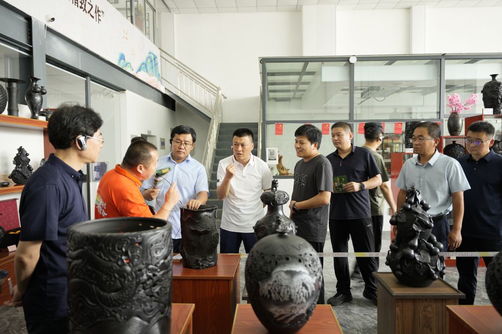 隨后,大家走進了龍格黑陶藝術(shù)研究院,了解黑陶的歷史文化,近距離感受黑陶文化的魅力。考察團一行被精美的黑陶作品深深吸引,對龍格黑陶的制作工藝和傳承價值表示贊賞。